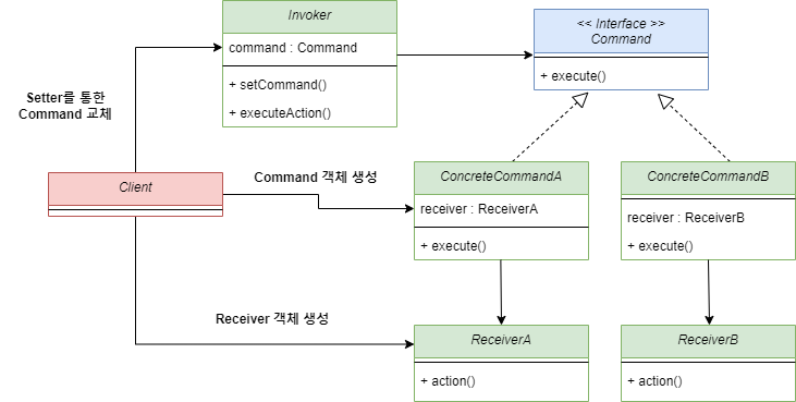 간단하고 확장 가능한 구조로 만들 수 있으며, 요청을 캡슐화하여