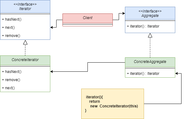 위의 구조 예시에서 Iterator 인터페이스를 직접 만들어 썼지만,