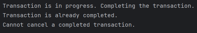 System.out.println("Transaction is in progress. Completing the transaction.");