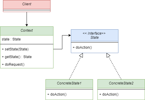 상태 패턴(State Pattern)은 '객체 상태'를 클래스로 표현한 패턴이라고 보면 된다.