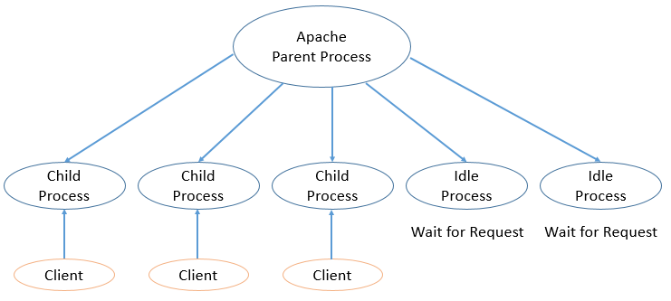 아파치 서버는 요청이 들어오면 커넥션을 형성하기 위해 프로세스를 생성한다.
