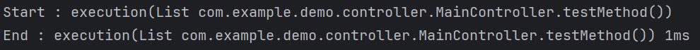 System.out.println("End : " + joinPoint.toString() + " " + timeMs + "ms");