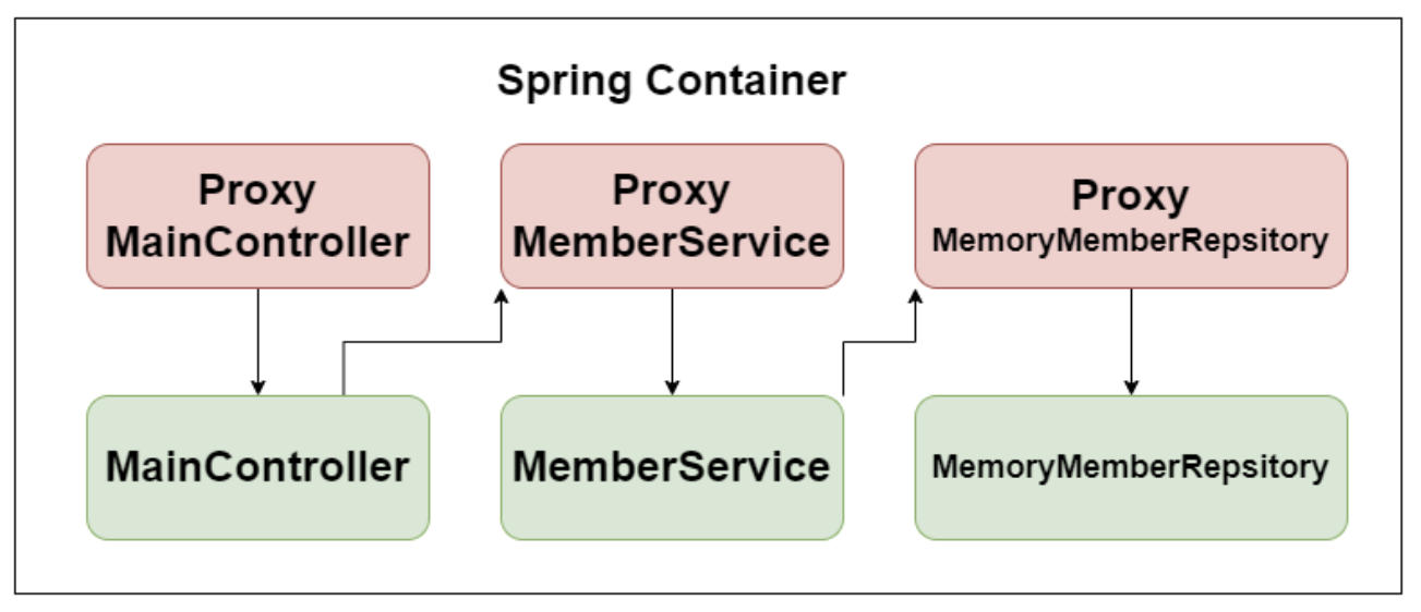 즉 MainContoller에서는 Proxy Bean 객체인 Proxy MainController 객체를 먼저 호출하게 되고,