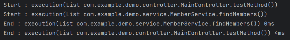 다음과 같이 해당 메소드에서만 AOP가 적용되는 것을 볼 수 있다.