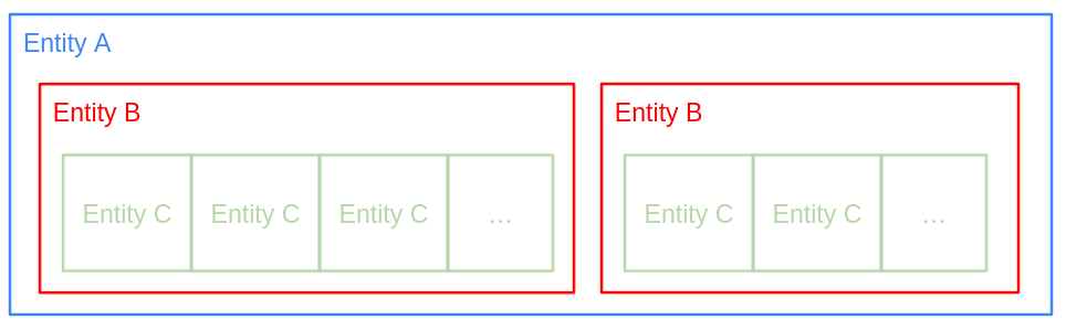 만약 Entity A, B, C 사이의 연관 관계가 위 도식과 같이